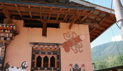 不丹有一个“怪俗”,就是对男性生殖器的崇拜,彩绘的男性生殖器在墙壁、大门上举目可见,并且图案各异。