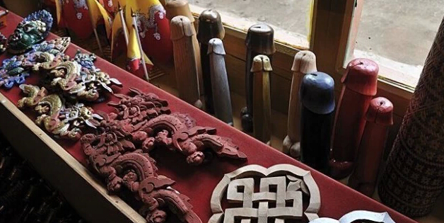 在不丹宗教传说中,身有大阳具如同手有“金刚杵”,能鞭击山妖恶魔。参观寺庙时,只要稍加留心,就会发现佛像前常摆着石制或木制的阳具,十分精致光亮。不仅如此,僧侣还会以木制阳具轻敲信众头顶,用来祈求平安。