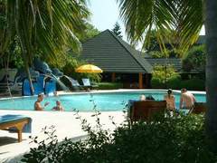 所有客房功能的热带装饰,国王大小床,木地板,空调,吊扇,休憩区,迷你酒吧,冰箱,茶/咖啡机,国际直拨长途电话,平板液晶电视, CD / DVD播放器,个人安全,部分露天带有淋浴,浴配件和吹风机,阳台与休息室,家具及每晚床服务。电力是220伏特, 50赫兹。还提供免费使用的休闲长廊和泳池及泳滩及泳滩的毛巾。