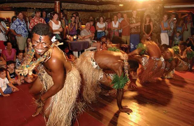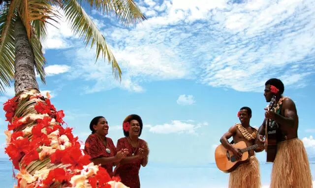 斐济人热爱唱歌,多数岛屿每周都有MEKE之夜,包括当地的LOVO大餐、传统歌舞表演和渡火表演
