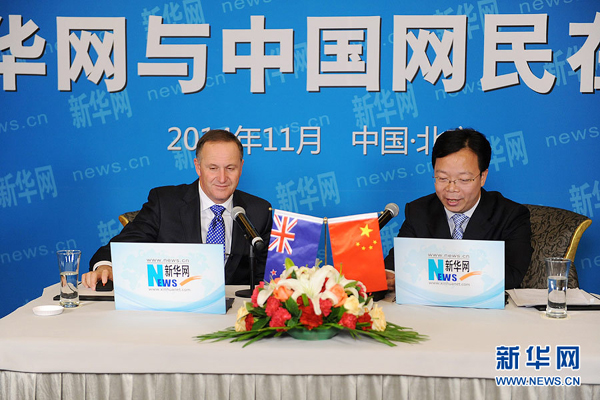 新西兰总理约翰·基11月10日至11日出席在北京举行的亚太经合组织第二十二次领导人非正式会议。11日,约翰·基在新华网与中国网民在线交流,回答中国网民的问题。