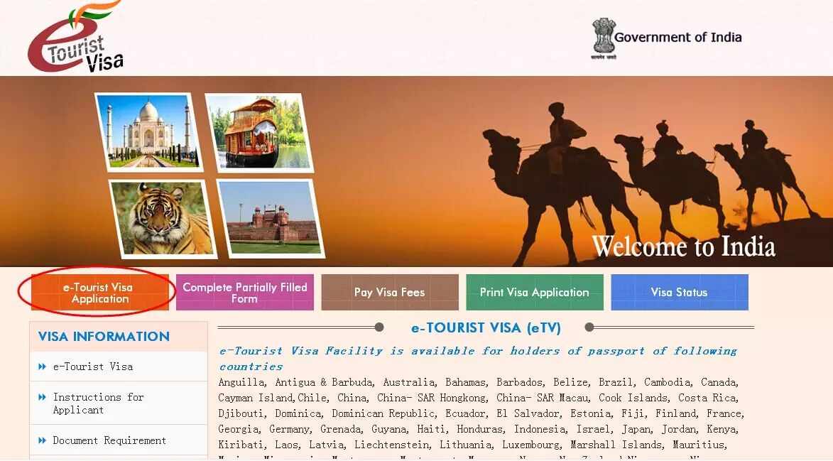 印度电子签证申请网址: