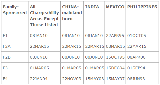 依亲移民的排期时间依旧十分冗长,除F2A美国永久居民的配偶和未成年未婚子女这个类别之外,其它类别均需等待6-12年不等的时间。