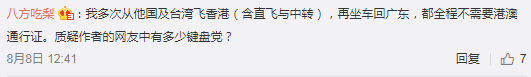 陈女士:回国后。我发了篇文章,当时转发量特别大,也有人攻击我们,国航也发了一个微博说我们不对,需要通行证。但很多人也在国航微博下面质疑他们发出来的几条规定有问题,我就认为我们没错。